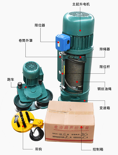 坚固耐用,功能齐全,使用寿命更长,绿色环保。开辟电葫芦轻巧环保节能时期,使用方便、运作稳定、电缆铜线电动机、灵便运用。